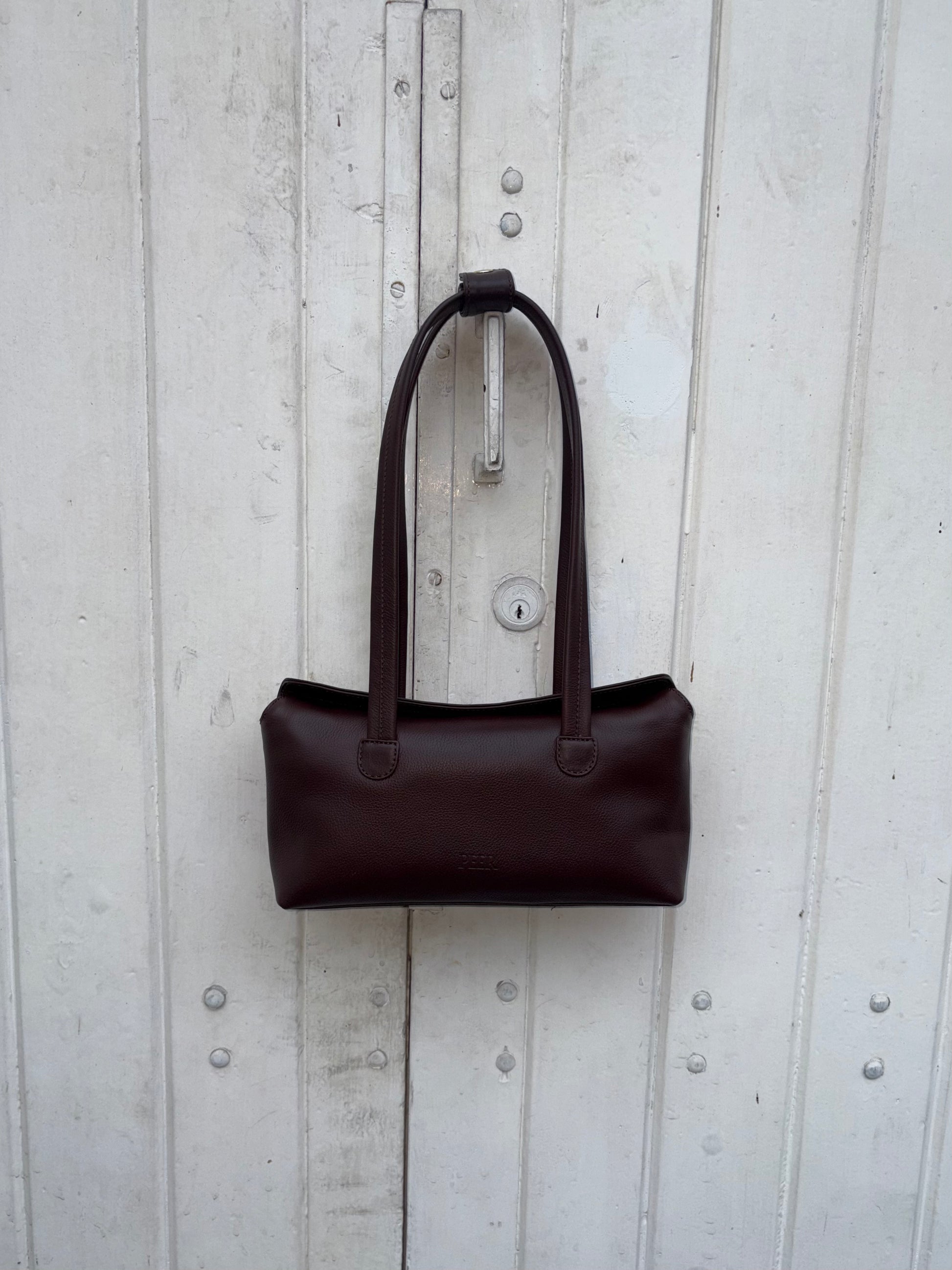 La mini cartera Sade de PEER condensa la audacia y elegancia del modelo original en un tamaño irresistiblemente chic. Su diseño fruncido y el distintivo tubo dorado siguen capturando todas las miradas, mientras que el cuero brillante en un profundo color marrón mantiene esa feminidad sofisticada. Su tamaño compacto es perfecto para llevar lo esencial con estilo, ofreciendo la misma versatilidad para lucirla al hombro o en la mano. A pesar de su silueta reducida, esta pieza atrevida no sacrifica la funcionalidad, haciendo que te destaques con elegancia en cualquier ocasión.